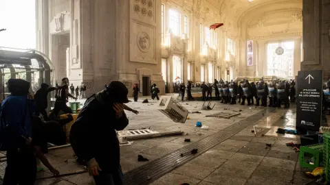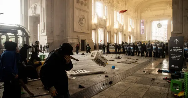 En Milán, la tensión escaló cuando decenas de manifestantes vestidos de negro y armados con garrotes intentaron romper la entrada principal de la estación central de trenes de la ciudad, lanzando bombas de humo, botellas y piedras a la policía, que respondió con gas lacrimógeno. En Bolonia, la policía utilizó cañones de agua para dispersar a una multitud de manifestantes que bloqueaba una autopista.