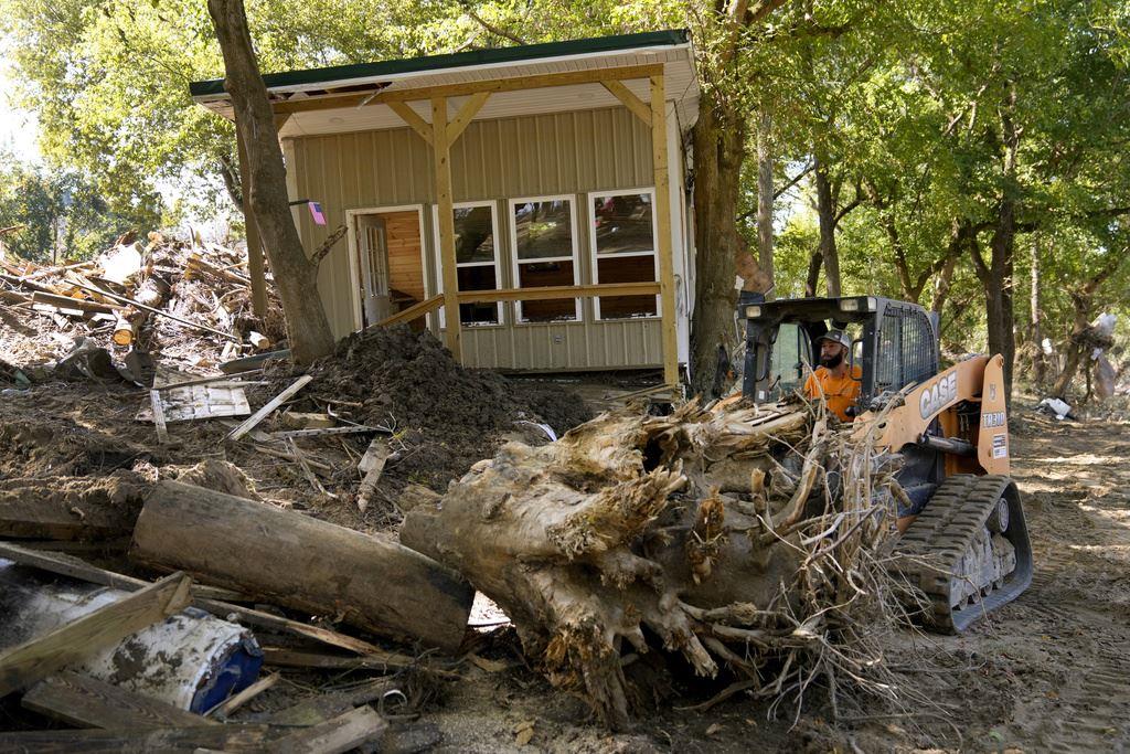La ciudad de Asheville, en las montañas occidentales de Carolina del Norte, quedó especialmente afectada. Una semana después, los trabajadores utilizaron escobas y maquinaria pesada para retirar el lodo y escombro del exterior de la cervecería New Belgium Brewing Company, ubicada junto al río French Broad, uno de los miles de negocios y hogares de la ciudad que se vieron afectados.