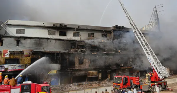 El incendio se propagó rápidamente a través de tiendas que almacenaban cosméticos, prendas de vestir y productos de plástico, señaló el médico Abid Jalal Sheikh, responsable de los servicios de emergencias de la ciudad.