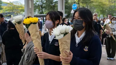 Las donaciones para los sobrevivientes del incendio habían alcanzado los 900 millones de dólares hongkoneses (115 millones de dólares estadounidenses) hasta el lunes, indicaron las autoridades, al tiempo que un flujo constante de personas colocaba flores, tarjetas y otros objetos de recuerdo a un altar improvisado cerca del complejo de edificios quemados.