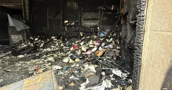 El incendio del fin de semana causó graves daños en la biblioteca y las oficinas administrativas del templo de 165 años de antigüedad. Las autoridades evaluaban los daños por el humo en cinco Torás —los rollos sagrados con el texto de los primeros cinco libros de la Biblia hebrea— ubicados dentro del santuario. Dos Torás dentro de la biblioteca, donde se registró el peor daño, quedaron destruidas. Una Torá que sobrevivió al Holocausto se encontraba detrás de un vidrio y no resultó dañada por las llamas, informó la congregación.