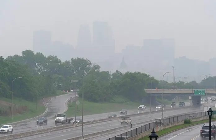El olor a humo llegaba hasta el área de Minneapolis-St. Paul el martes por la mañana a pesar de la lluvia. La Agencia de Control de la Contaminación de Minnesota emitió una alerta para casi todo el estado hasta el miércoles, pero el área de las Ciudades Gemelas fue la más afectada en la región el martes.