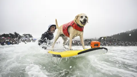 Perros de todo el mundo compiten en el evento anual de surf canino en Pacifica California