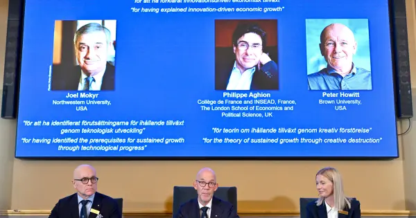 El premio fue compartido por el holandés Joel Mokyr, de 79 años, que trabaja en la Universidad Northwestern; Philippe Aghion, de 69 años, que trabaja en el Collège de France y la London School of Economics; y Peter Howitt, nacido en Canadá, de 79 años, que trabaja en la Universidad de Brown.