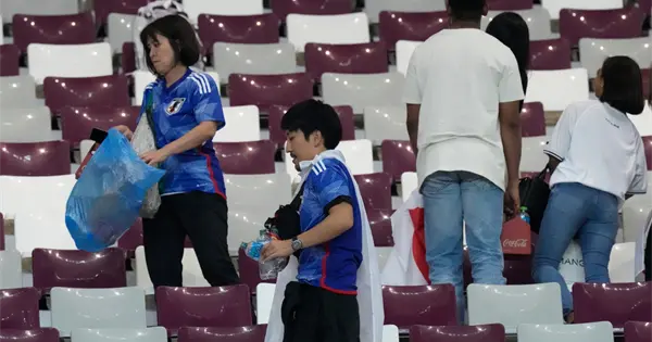 En el Mundial de Rusia de 2018, los jugadores japoneses limpiaron de forma célebre el vestuario tras perder y dejaron una nota de agradecimiento en ruso. En 2022, los aficionados dejaron notas de agradecimiento en bolsas de basura escritas en árabe, inglés y japonés.