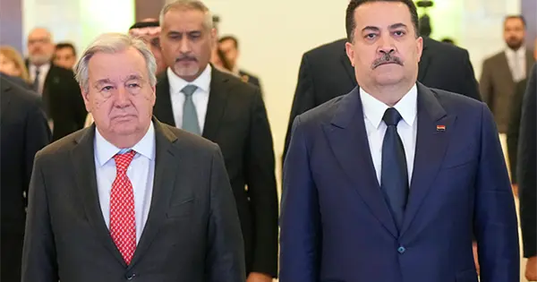 Bagdad, Irak.- El secretario general de Naciones Unidas, Antonio Guterres, estuvo en Bagdad el sábado para marcar el fin de la misión política establecida en 2003 tras la invasión a Irak liderada por Estados Unidos que derrocó a Saddam Hussein.