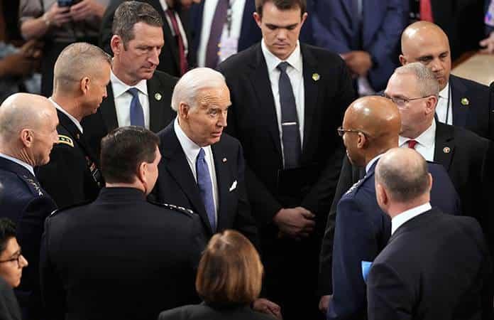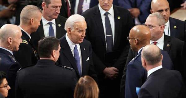 Los comentarios de Biden se produjeron cuando hablaba con el senador Michael Bennet, demócrata por Colorado, en el pleno de la Cámara de Representantes después del discurso sobre el Estado de la Unión el jueves por la noche.