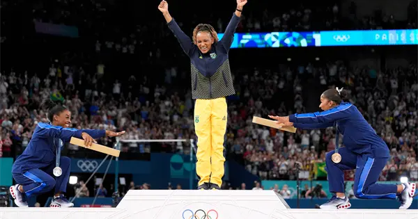 La competencia concibió una célebre foto del podio olímpico: Chiles, la medallista de plata Simone Biles y la campeona brasileña Rebeca Andrade, todas mujeres de color. El desenlace depende de solo unos pocos segundos: ¿Puede el equipo de Estados Unidos demostrar que hizo una apelación oportuna en nombre de Chiles?