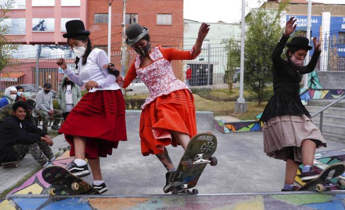 El sombrero, las blusas y las polleras plisadas típicas de las mujeres indígenas de Bolivia son el toque esencial de un movimiento de jóvenes patinadoras que promueve el patinaje en skate.
