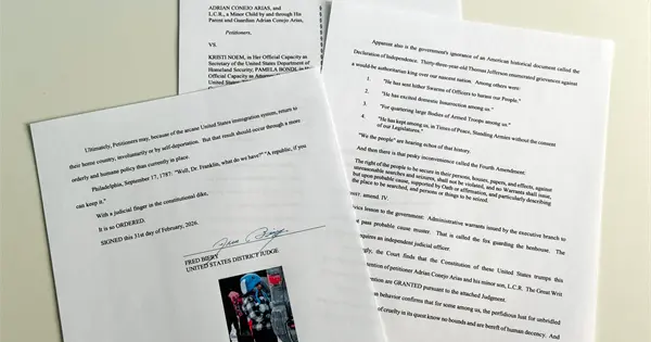 SAN ANTONIO (AP) — Un juez ordenó el sábado al gobierno federal liberar a más tardar el martes a un niño de cinco años y a su padre de un centro de detención en Texas, donde fueron llevados tras ser arrestados por agentes de inmigración en un suburbio de Minneapolis el mes pasado.