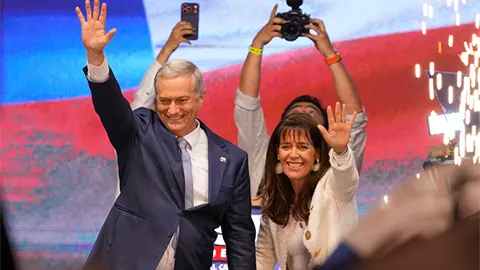 Kast, del Partido Republicano, fue elegido el nuevo gobernante del país sudamericano para los próximos cuatro años al conseguir un 58.18% de los votos, frente al 41.82% logrado por la candidata oficialista de izquierda Jeannette Jara, después de que el Servicio Electoral escrutara más del 99.3% de las mesas de votación.