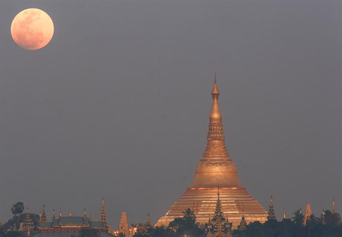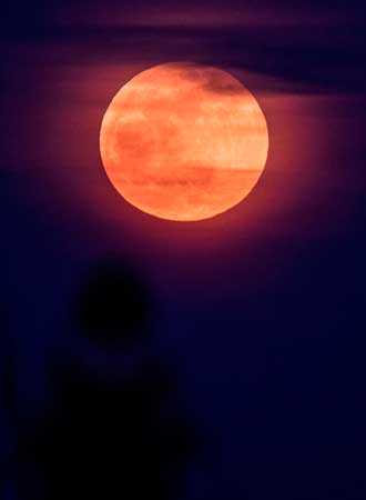Bangkok, Tailandia.- La luna se tiñó de color rojizo debido a un eclipse lunar total que ocurrió además cuando el satélite se encuentra en el punto más cercano a la Tierra, un fenómeno seguido por millones de personas en medio mundo.