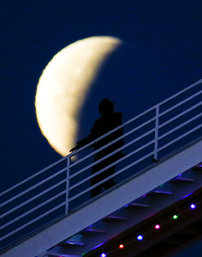 Con las condiciones atmosféricas propicias, los interesados pudieron ver cómo la luna se tiñó de color cobrizo sin necesidad de usar gafas especiales, como en el caso de los eclipses solares.