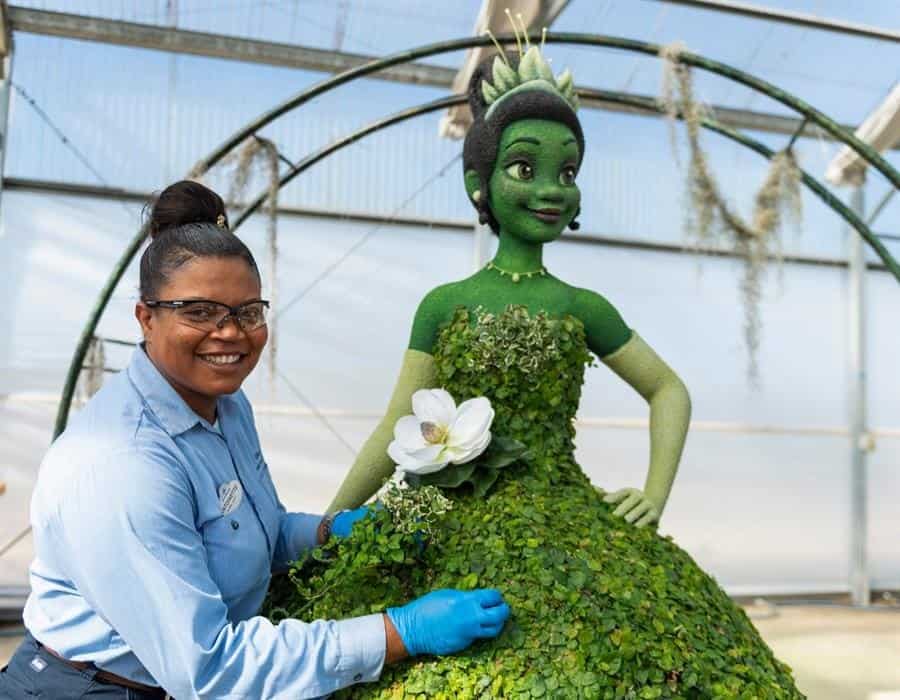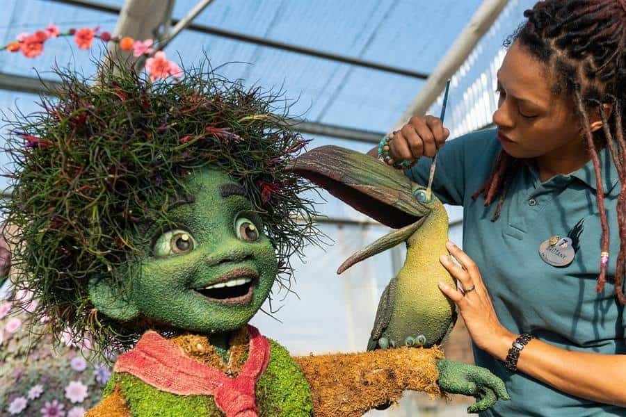 Además de los cuatro personajes de "Encanto", con detalles inspirados en cada uno, se presenta un nuevo topiario de Tiana, del filme "The Princess and the Frog", con un vestido de gala y luciérnagas iluminadas, y uno de del Dragón, de "Raya and the Last Dragon", ubicado en el pabellón de Japón.