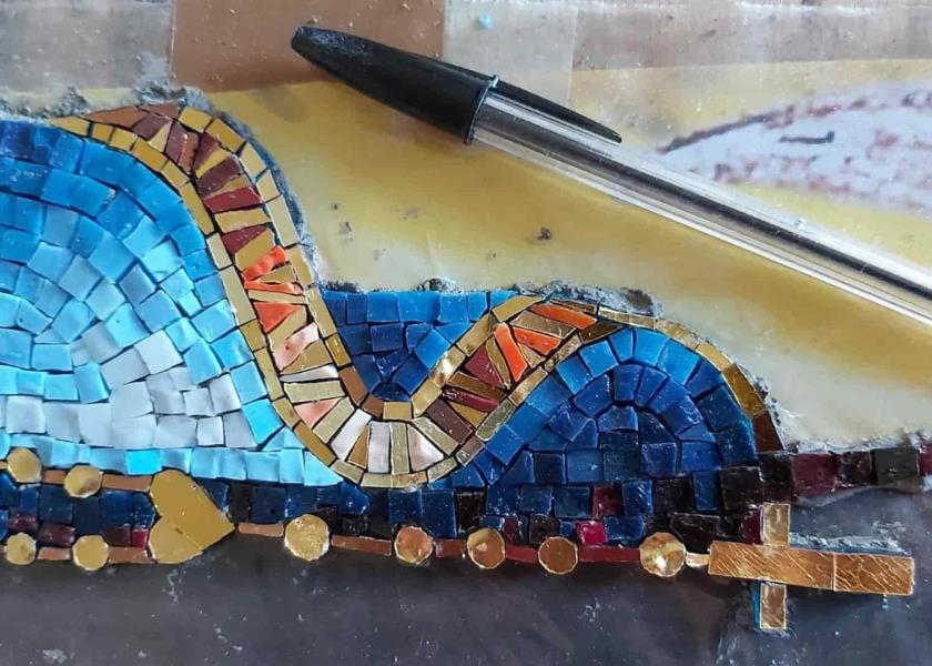 El mosaico, construido con 70.000 diminutas piezas de colores azules, rojizos y dorados, se descubrió este viernes con la presencia del embajador de Colombia ante la Santa Sede, Jorge Mario Eastman.
