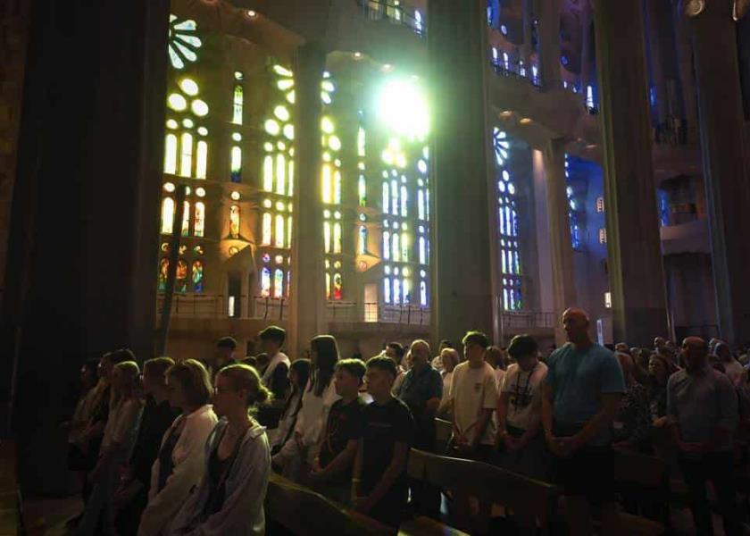 Albaiges elogió la decisión tomada hace unos años de celebrar una misa dominical multilingüe en el altar principal de la altísima basílica llena de color. Sin embargo, hay tanta demanda de las 800 entradas gratuitas que varios cientos de personas que hacen cola habitualmente no entran, afirma el padre Turull.
