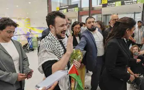 Mahmoud Khalil saludó a amigos y habló brevemente con periodistas en el Aeropuerto Internacional de Newark, en Nueva Jersey, un día después de salir de un centro de inmigración federal en Luisiana. El exestudiante de posgrado de la Universidad de Columbia y símbolo de la represión del presidente Donald Trump contra las protestas en campus universitarios, prometió seguir protestando contra la guerra de Israel en Gaza.