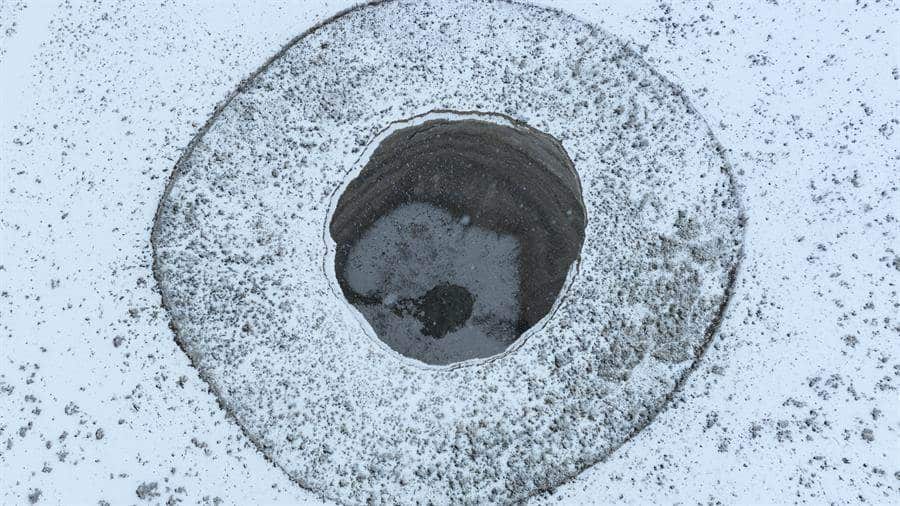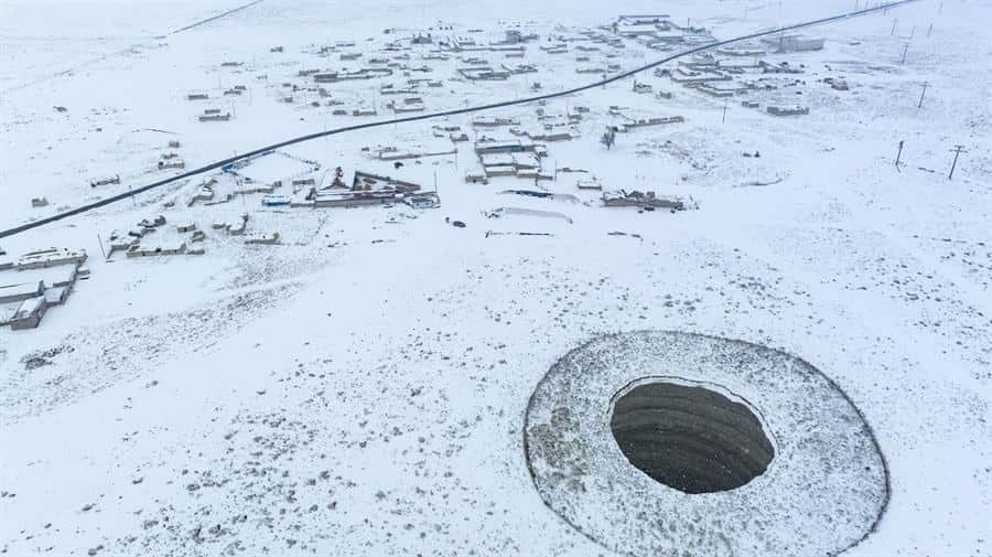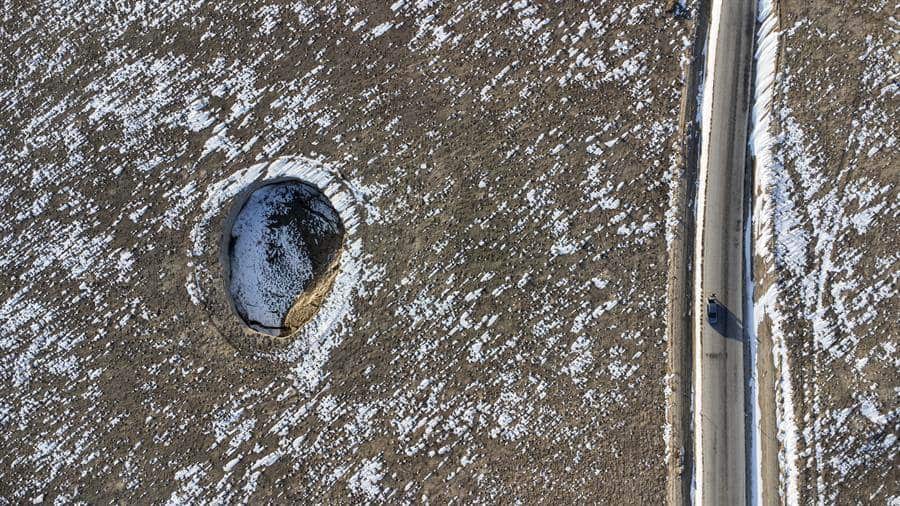 Perfectamente circulares y de paredes verticales, estos huecos dan la impresión de que la tierra se ha tragado lo que hubo en la superficie.