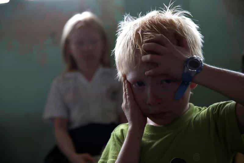 Además de las lesiones cutáneas, los albinos sufren un sinfín de problemas oculares como nistagmo (movimiento involuntario de los ojos), estrabismo, fotofobia o miopía, lo que les obliga a revisarse la vista constantemente.