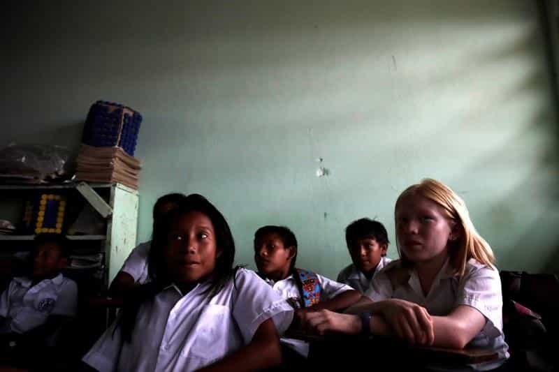 Su caso podría parecer una anomalía genética, pero es una realidad bastante común en esta etnia indígena: los expertos dicen que tiene una de las tasas de albinismo más altas del mundo y calculan que hay un albino por cada 150 gunas.
