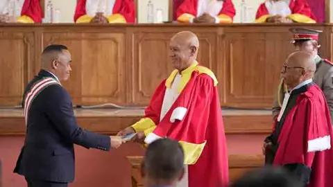 El coronel Michael Randrianirina, comandante de una unidad de élite del ejército, tomó posesión como nuevo presidente en una ceremonia en la sala principal del Tribunal Constitucional Supremo, frente a sus nueve jueces vestidos de rojo.
