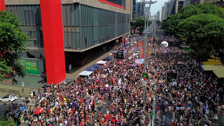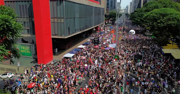 Mujeres de todas las edades y algunos hombres salieron a las calles en Río de Janeiro, Sao Paulo y otras ciudades, exigiendo el fin del feminicidio, la violación y la misoginia, y que los hombres se unan a ellas en su lucha.