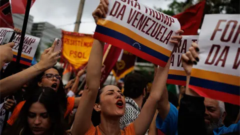 São Paulo, 5 ene (EFE).- Cientos de brasileños, integrantes de movimientos estudiantiles y partidos de izquierdas, se manifestaron este lunes para exigir la liberación del presidente venezolano, Nicolás Maduro, y para condenar el ataque de Estados Unidos contra el país caribeño.