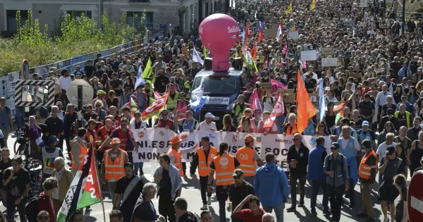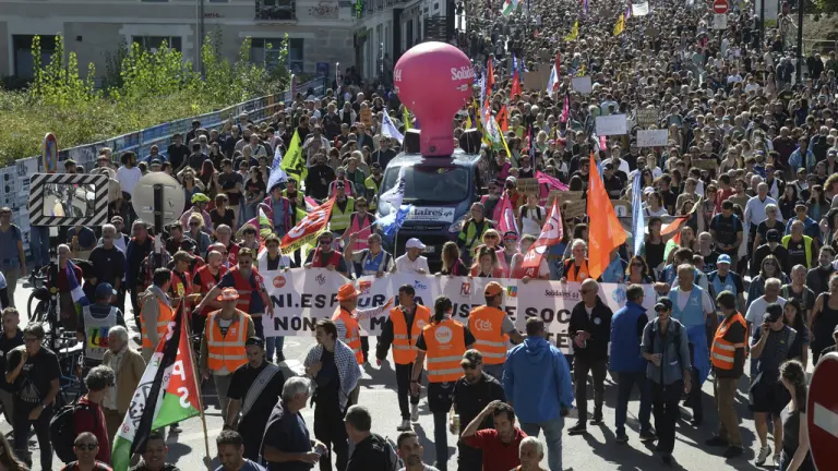 "La burguesía de este país se ha estado atiborrando, ya no saben qué hacer con su dinero. Así que si hay una crisis, la pregunta es quién debería pagarla", expresó Fabien Villedieu, líder del sindicato de trabajadores ferroviarios SUD-Rail. "Estamos pidiendo que el plan de austeridad del gobierno, que consiste en hacer que los más pobres de este país siempre paguen —ya sean empleados, jubilados, estudiantes— termine y que hagamos que los más ricos de este país paguen".