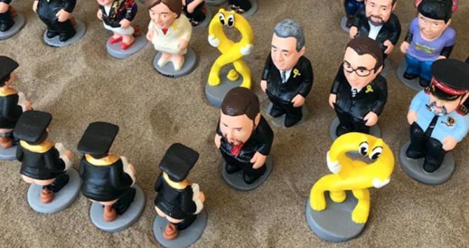 Este año se creó también un “caganer” emulando un lazo amarillo, símbolo de las reivindicaciones para reclamar la libertad de los independentistas presos, pero también la figura de un juez.