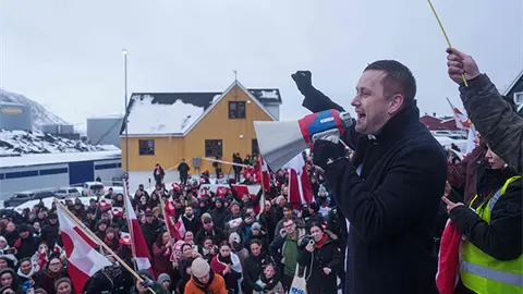 "Comenzaron presentándose como nuestros amigos y aliados, que querían hacer Groenlandia mejor para nosotros que los daneses", dijo, mientras otros coreaban de fondo. "Y ahora simplemente nos amenazan".