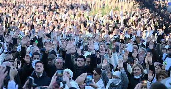 Durante cerca de una hora, 6,200 personas, según datos oficiales -muchas de ellas vestidas de blanco y con flores- fueron llegando, poco a poco y a pesar del intenso frío, a la rotonda donde Mehdi fue tiroteado por dos hombres en moto el pasado 13 de noviembre, a plena luz del día. Tenía solo 20 años.