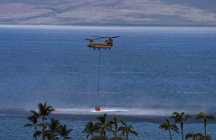 La Guardia Nacional está empleando helicópteros Chinook en las tareas de extinción y ha arrojado ya unos 189.000 galones de agua (unos 715.442 litros) para apoyar los esfuerzos frente a las llamas.