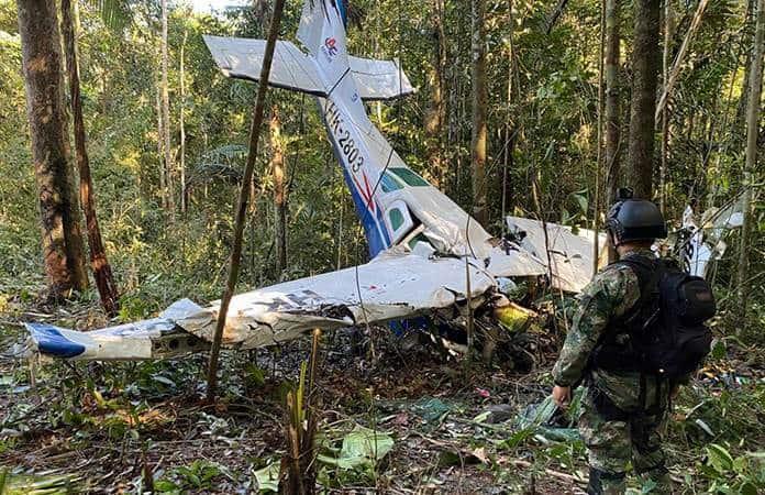 En la aeronave viajaban tres adultos, que perecieron y cuyos cuerpos ya fueron rescatados, y cuatro niños de 13, 9, 4 y 1 año de edad, en cuya búsqueda persisten de forma ininterrumpida 120 militares y 73 indígenas.
