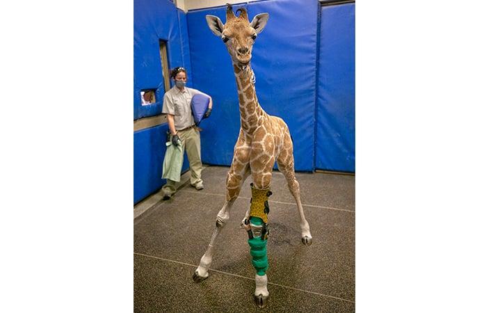 Pero no tenían experiencia en la aplicación de un dispositivo ortopédico en una cría de jirafa.