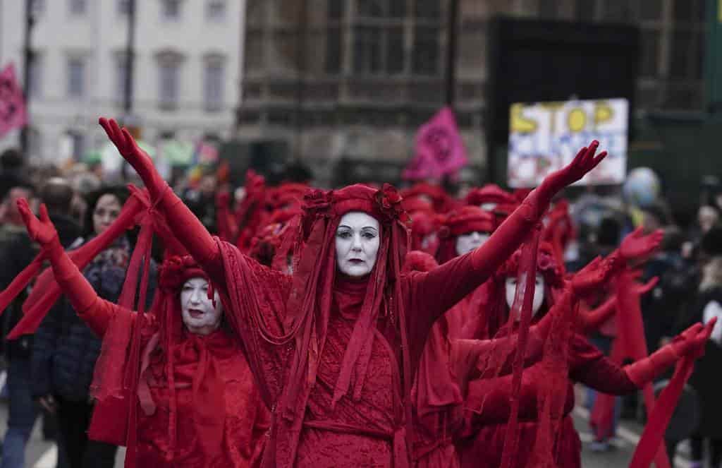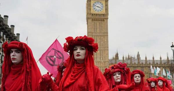 Unos 60,000 manifestantes, según los organizadores, participaron en una marcha con pancartas y disfraces de animales desde la abadía de Westminster, pasando por varios edificios oficiales, hasta la plaza del Parlamento, donde escenificaron una "muerte colectiva" en memoria de la biodiversidad perdida.