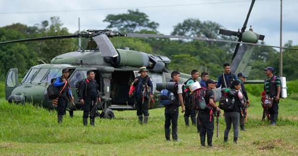 Militares colombianos buscan a los niños perdidos con reflectores y altavoces