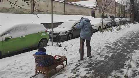 La llegada de la nieve tras un diciembre relativamente cálido alegró a los niños, que por fin pudieron sacar sus trineos a la calle para disfrutar de un auténtico clima invernal, pero la bajada de las temperaturas supone un reto para el maltrecho sistema energético y para miles de soldados que defienden en el frente al país de la invasión rusa.