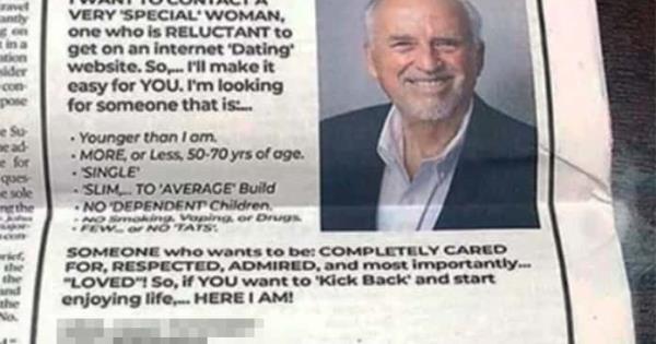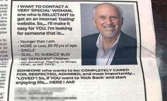 Paul Young, prominente empresario de Laredo, Texas, decidió buscar a la mujer de sus sueños por medio de un anuncio en un periódico estadounidense. Aunque no especifica su edad, Paul solicita a una mujer más joven que él, de entre 50 y 70 años.