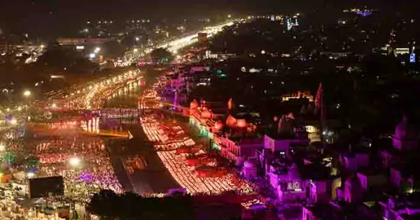 Las celebraciones fueron más visibles en la ciudad de Ayodhya, en el estado de Uttar Pradesh. Los hindúes creen que el dios Ram nació allí y regresó después de 14 años en el exilio. La gente enciende lámparas de barro para marcar su regreso a casa.