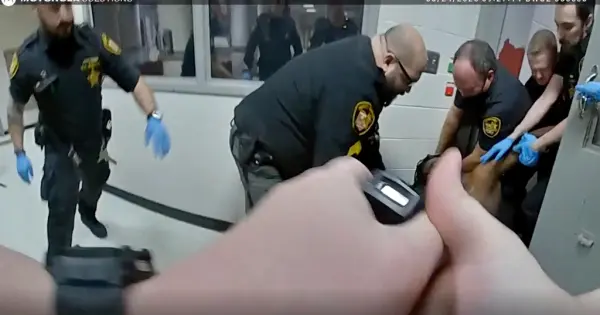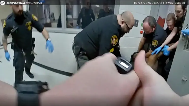 Nueve agentes se reunieron fuera de la celda, y algunos entraron apresuradamente. Inmovilizaron a Black en el suelo y le pusieron esposas antes de forzarlo a una silla de sujeción, según mostró el video.