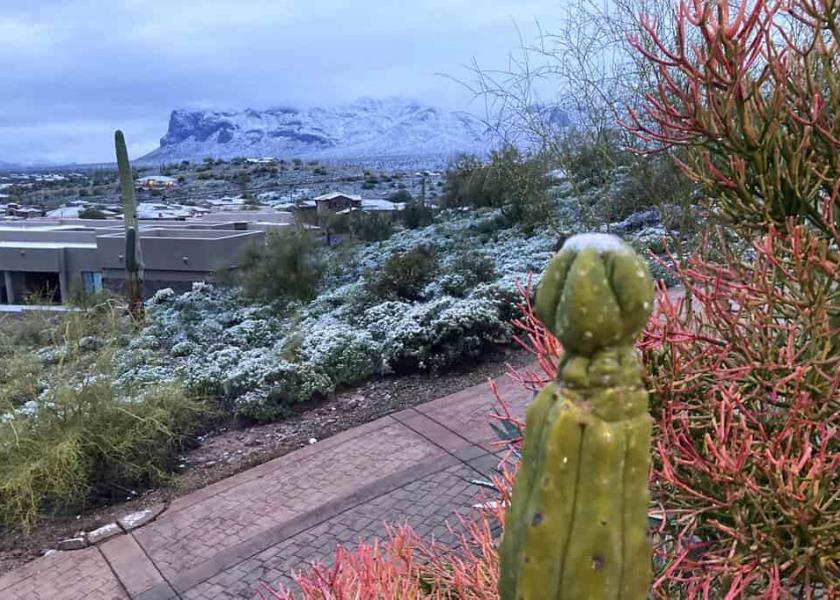 Portland, Oregon recibió casi 30 centímetros (un pie) de nieve en lo que ha resultado ser la segunda nevada más intensa de la historia. Las zonas montañosas de California experimentaron acumulaciones de nieve casi sin precedentes. Y los suburbios de Phoenix, Arizona, se encontraron al despertar con una capa de nieve sobre los cactus y los lozanos campos de golf.