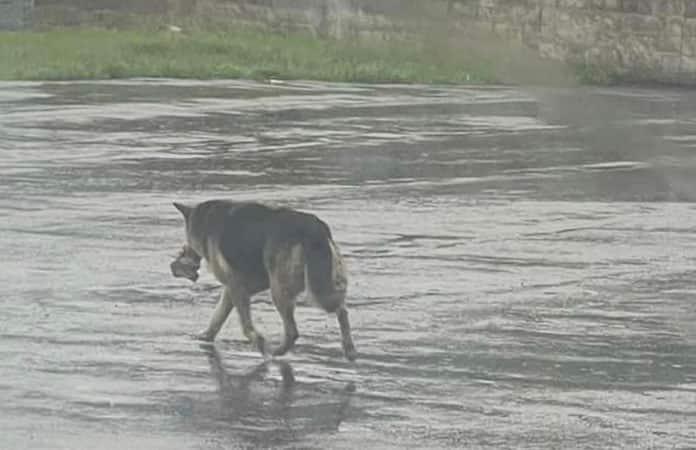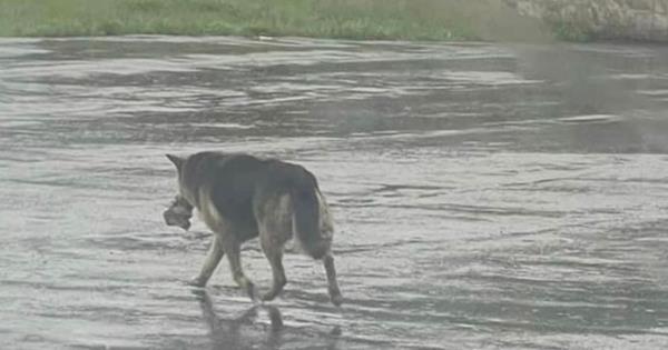 A través de Facebook, el centro de rescate animal South Lyon Murphy Lost Animal Recovery compartió la fotografía que se viralizó en internet. Allí se observaba a un perro caminando bajo la lluvia mientras cargaba su peluche.