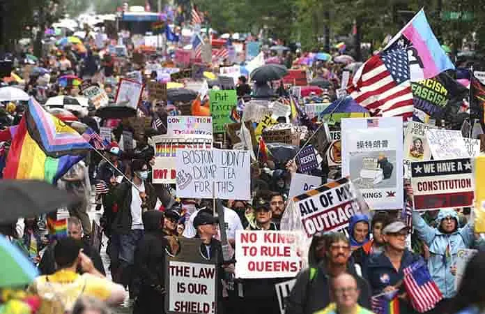 Los organizadores de las manifestaciones “No Kings” (“Sin reyes”) dijeron que millones de personas participaron en cientos de eventos. Los gobernadores de todo el país pidieron calma y prometieron no tolerar la violencia, mientras algunos movilizaron tropas de la Guardia Nacional antes de que los manifestantes se reunieran. Las confrontaciones fueron aisladas.
