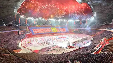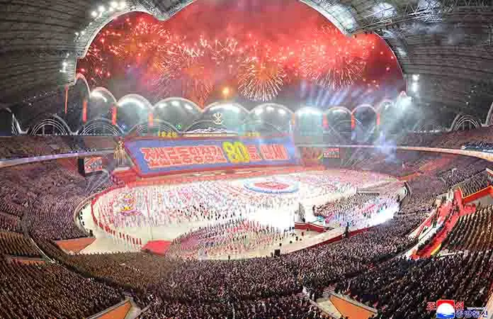 El desfile, que comenzó la noche del viernes y marcó el 80mo aniversario de la fundación del gobernante Partido de los Trabajadores, destacó la creciente posición diplomática de Kim y su implacable impulso por construir un arsenal que pueda alcanzar de manera viable a la zona continental de Estados Unidos y sus rivales en Asia.