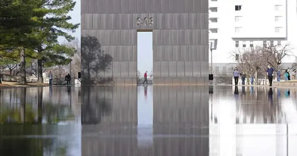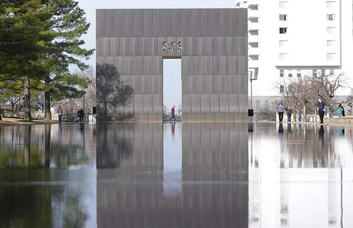 Después de la ceremonia, una procesión de gaiteros del Departamento de Bomberos de la ciudad condujo a muchos de los asistentes al otro lado de la calle hacia el memorial al aire libre construido en los terrenos donde una vez estuvo el edificio federal. El memorial incluye un museo, una piscina reflectante y 168 sillas vacías de vidrio, bronce y piedra grabadas con los nombres de los fallecidos. Diecinueve de las sillas son más pequeñas que las otras para representar a los niños.
