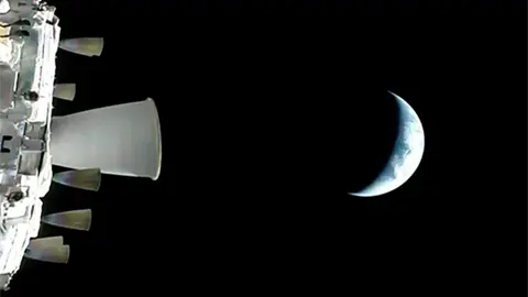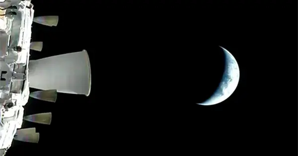 La maniobra de inyección lunar de la capsula hacia la luna se prolongó durante 5 minutos y 49 segundos y requirió que la nave experimentara un cambio de velocidad de 388 metros por segundo para salir de la órbita terrestre, explicó la NASA.