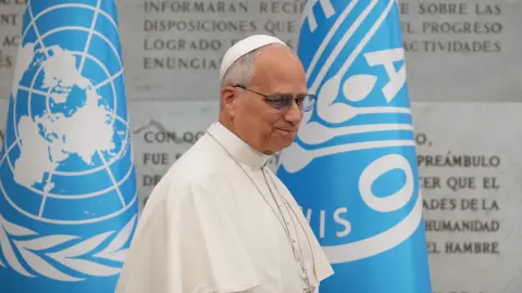 El papa León XIV condena el uso del hambre como arma de guerra y llama a la acción en la FAO.