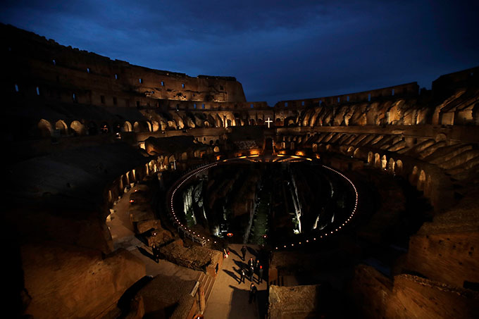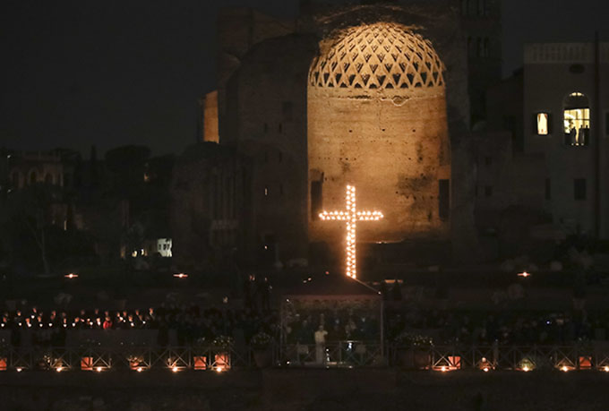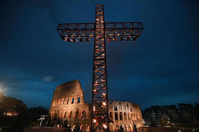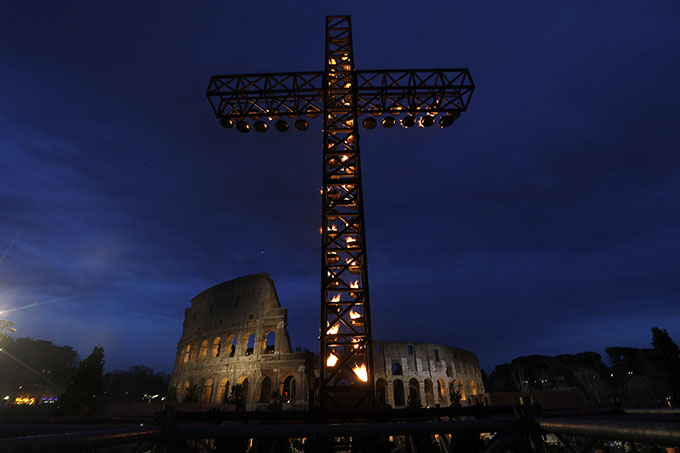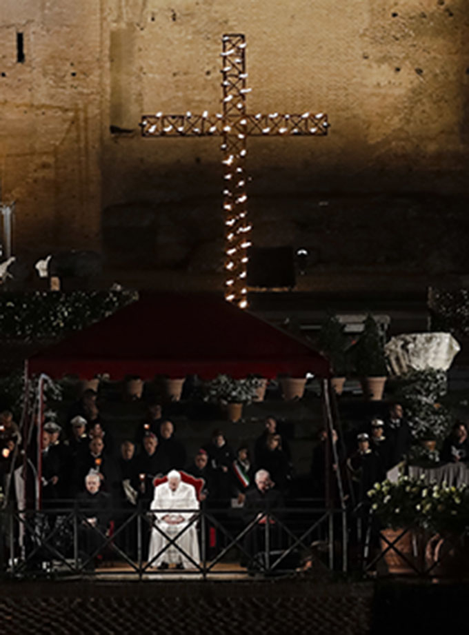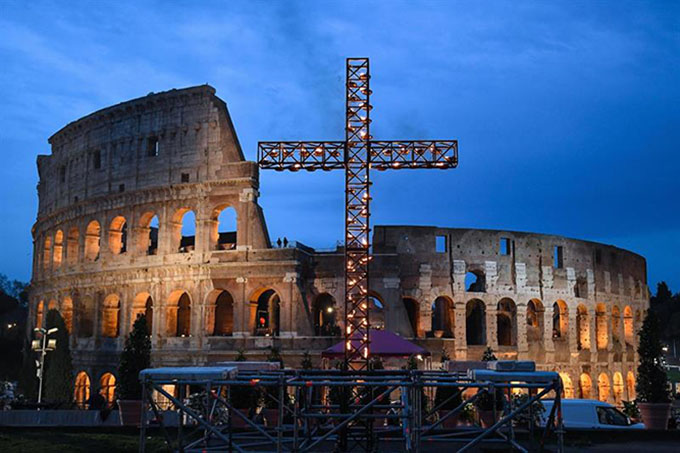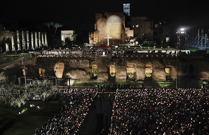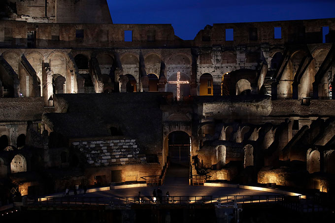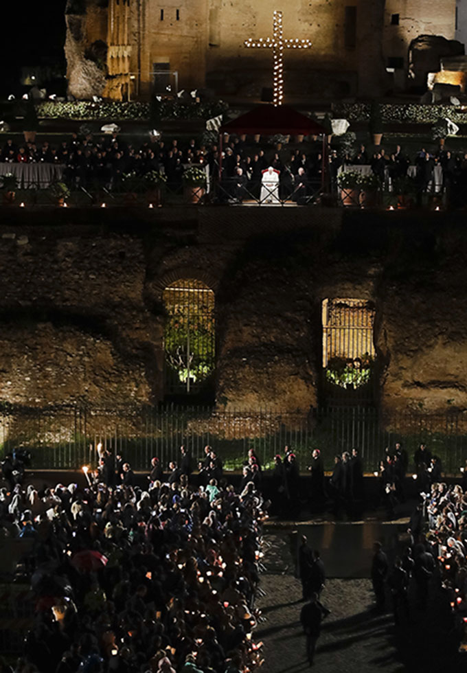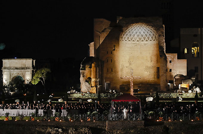 El Papa Francisco introdujo con su bendición el viacrucis del Viernes Santo ante miles de personas en el Coliseo Romano y comenzó la meditación de las 14 estaciones, cuyas reflexiones fueron escritas por jóvenes de entre 16 y 27 años.
