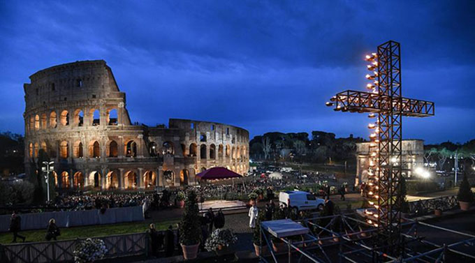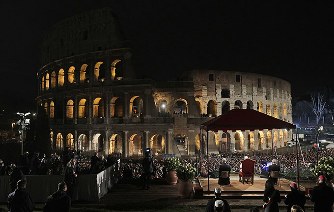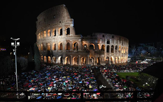 Según datos oficiales de la Gendarmería Vaticano, unas 20 mil personas se convocaron para participar en la celebración en el Coliseo.