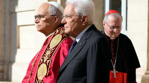 León completó el rito para cada nuevo papa al viajar por Roma hasta el Palacio del Quirinal para una reunión con el presidente Sergio Mattarella. Escoltado por la guardia de honor a caballo presidencial hasta el patio del palacio, el pontífice agradeció a Italia especialmente por su acogida a los peregrinos durante el Año Santo de 2025 en que millones de turistas fueron a la Ciudad Eterna.